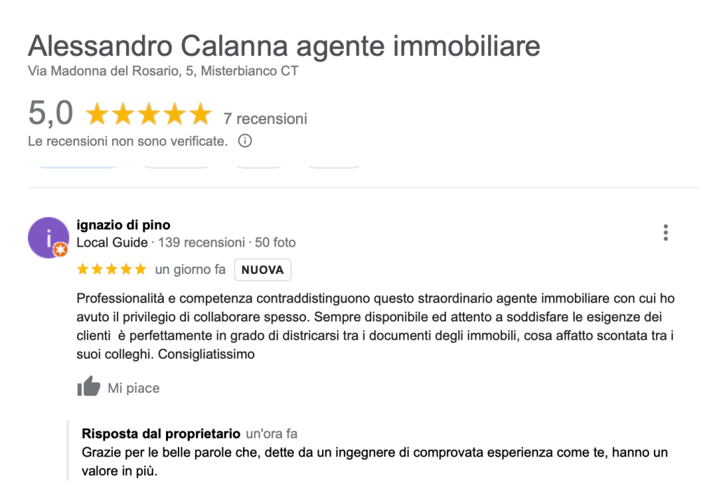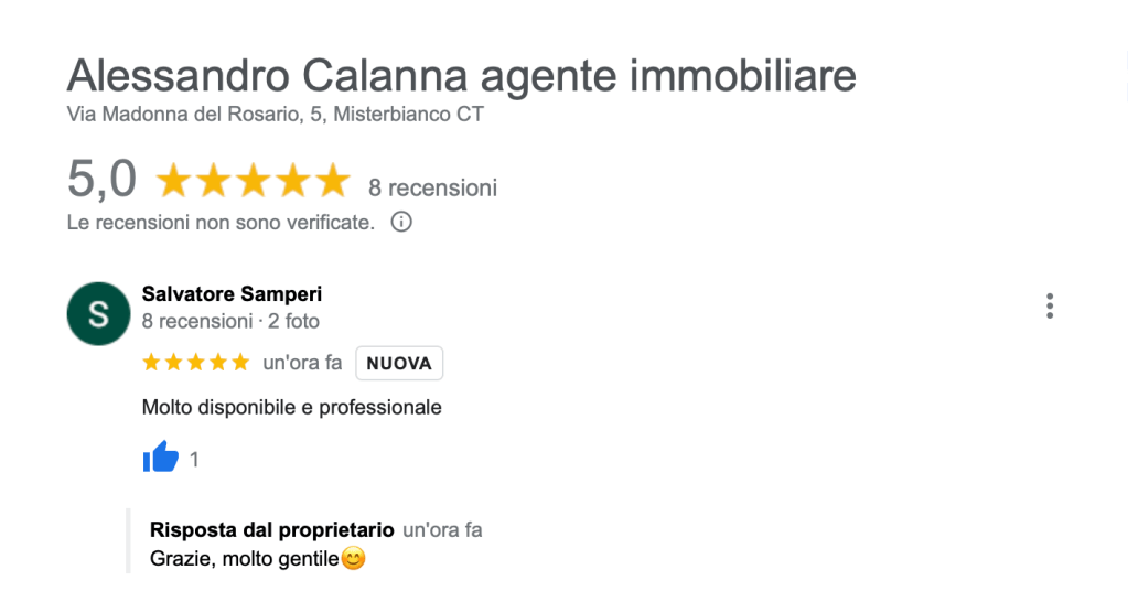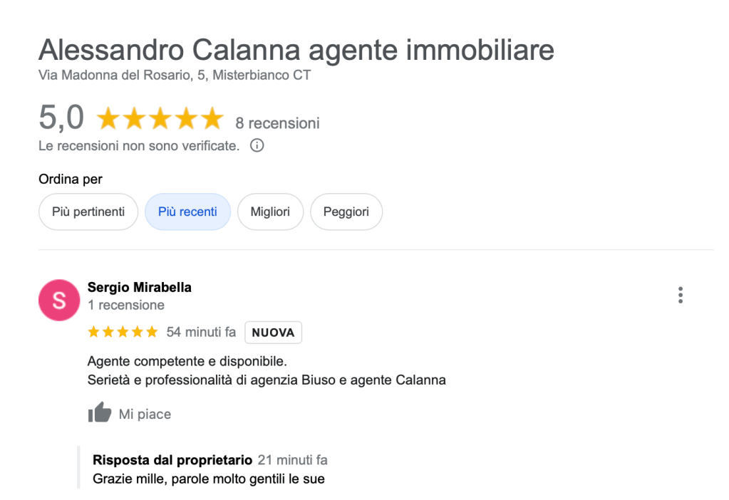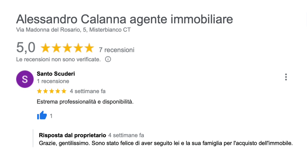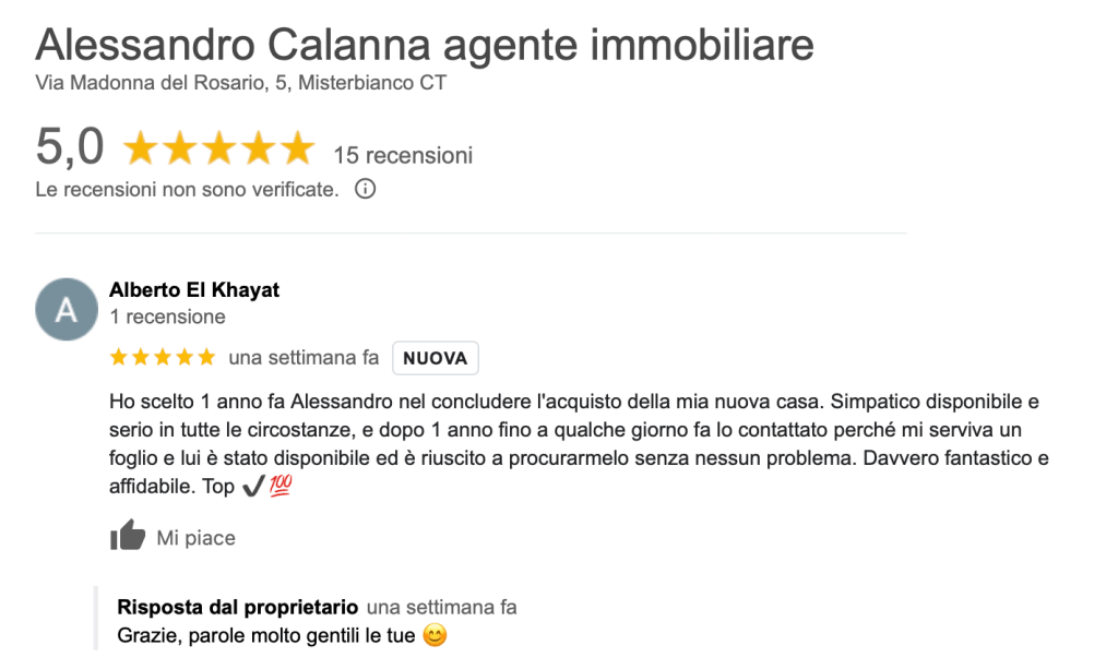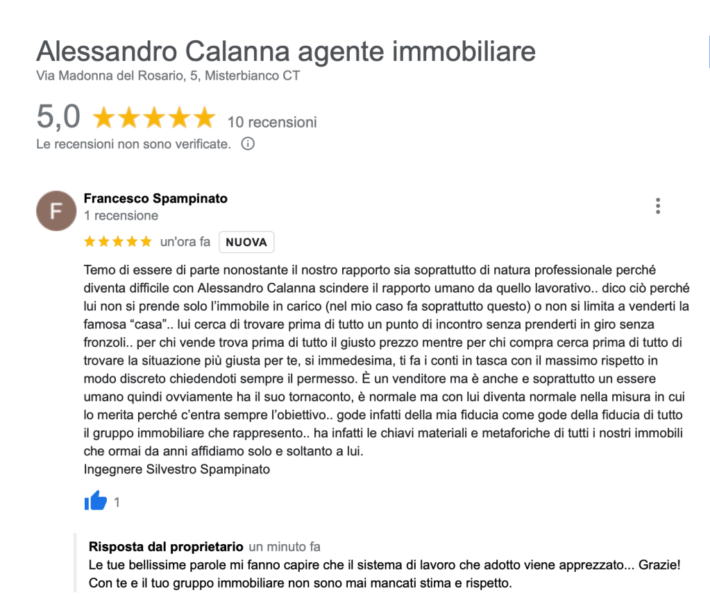 Se mi hai conosciuto per una semplice consulenza immobiliare o, meglio ancora, perché hai comprato, venduto o affittato un qualsiasi immobile, ti chiedo di lasciare una opinione su come ho svolto il mio lavoro.